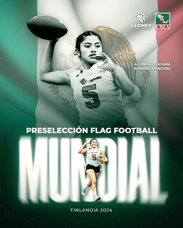 La jugadora mexicana representará a la bandera Tricolor en el Campeonato Mundial de Flag Football en Lahti, Finlandia. El campeonato se llevará a cabo entre el 25 y 30 de agosto de este año.